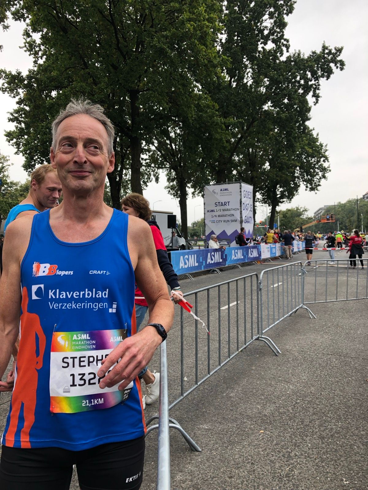 Stef Riemens was dit weekend afgereisd naar Eindhoven om daar de halve marathon te lopen. Stef die van alle markten thuis is. De ene week loopt hij 800 meter en de andere week dus weer een halve marathon. Stef ging hard van start en had geen GPS wat het koersen wat lastig maakte. Daarnaast was het ook best warm dus na 15 kilometer was de pijp helaas wel leeg. Maar karakter als hij heeft: uitlopen is het doel. Hij klokte 1:27:59. Een mooie eindtijd en goed voor een tweede plaats M60! Chapeau.