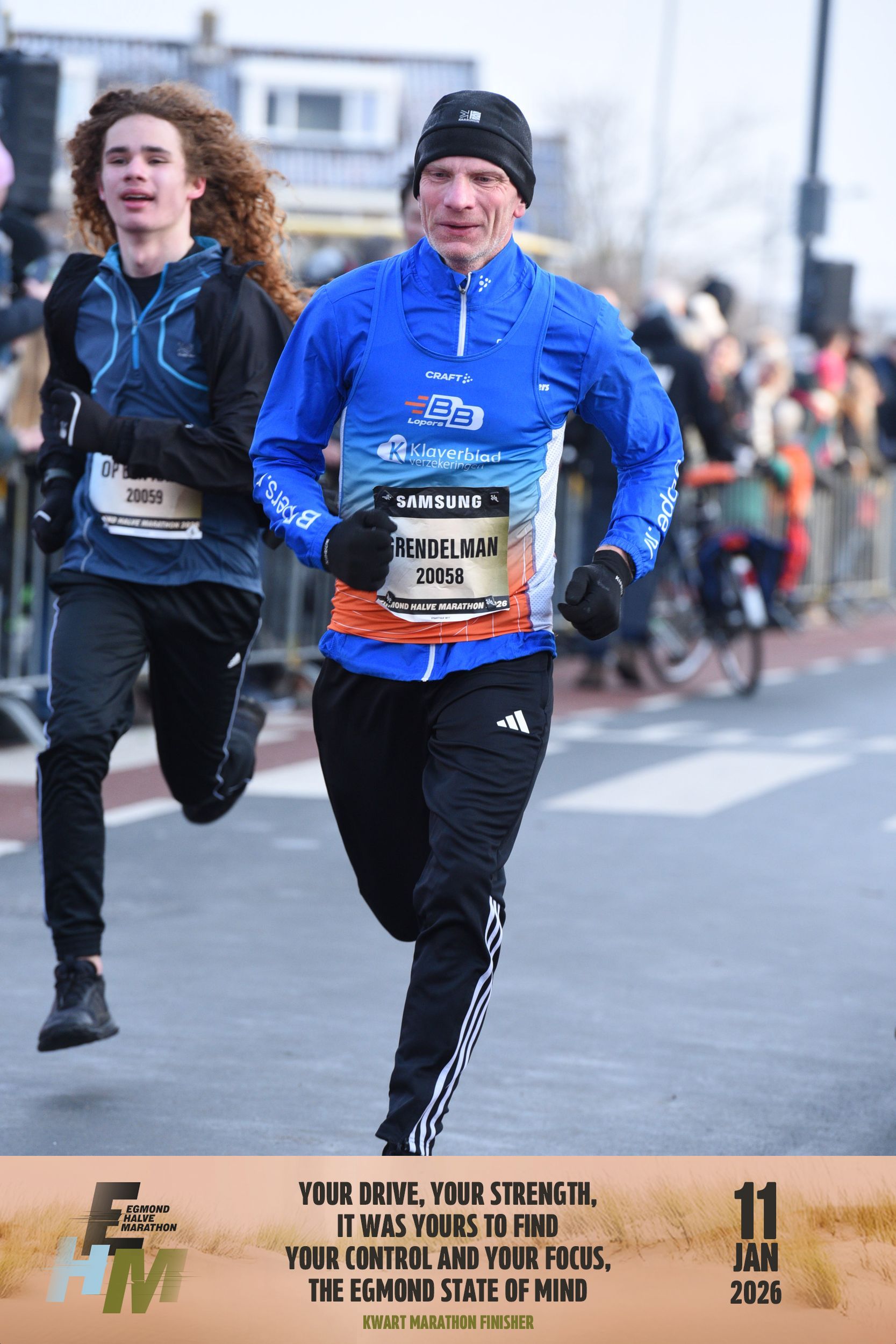 Ook onder deze ijskoude omstandigheden ging de Egmond Halve Marathon door met niemand minder dan onze eigen Rachel Kroes aan de startlijn. Ze zegt zelf: ‘By far de zwaarste en mooiste halve marathon tot nu toe! Met 7km snijdende tegenwind op het strand, heel veel onverhard en glooiende duinen, maximaal genieten!’. En dat maximaal genieten deed ze ook nog eens in een tijd van 01:37:59. Klasse gedaan! Ook Reginald Grendelman was aanwezig in Egmond. Na een chaotische start door een pendelbus die stilstond, liep hij samen met zijn zoon in 51:03 naar de finish van de kwart marathon. Missie geslaagd!