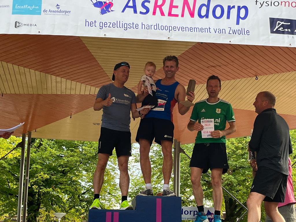 Bij de iets oudere mannen waren er twee podium plekken. Job van Iersel liep eerst mee tijdens de kinderREN om volgens plaats te nemen op de hoogste trede van het podium. Hij liep naar een tijd van 18:33. Gevolgd door Martijn Schakelaar die vandaag niet veel macht had maar toch als tweede over de streep kwam in een tijd van 18:51. Dat Martijn graag mag hardlopen laat zijn cooling-down wel zien door nog even 8 kilometer uit te lopen naar huis. Timo Berkenbosch vond het een feestje om in Assendorp te lopen. Helaas finishte hij net buiten het podium in een tijd van 19:07 en moest concluderen dat hij de minst snelste BB-lopers was van die dag. Desalniettemin een prestatie om trots op te zijn.