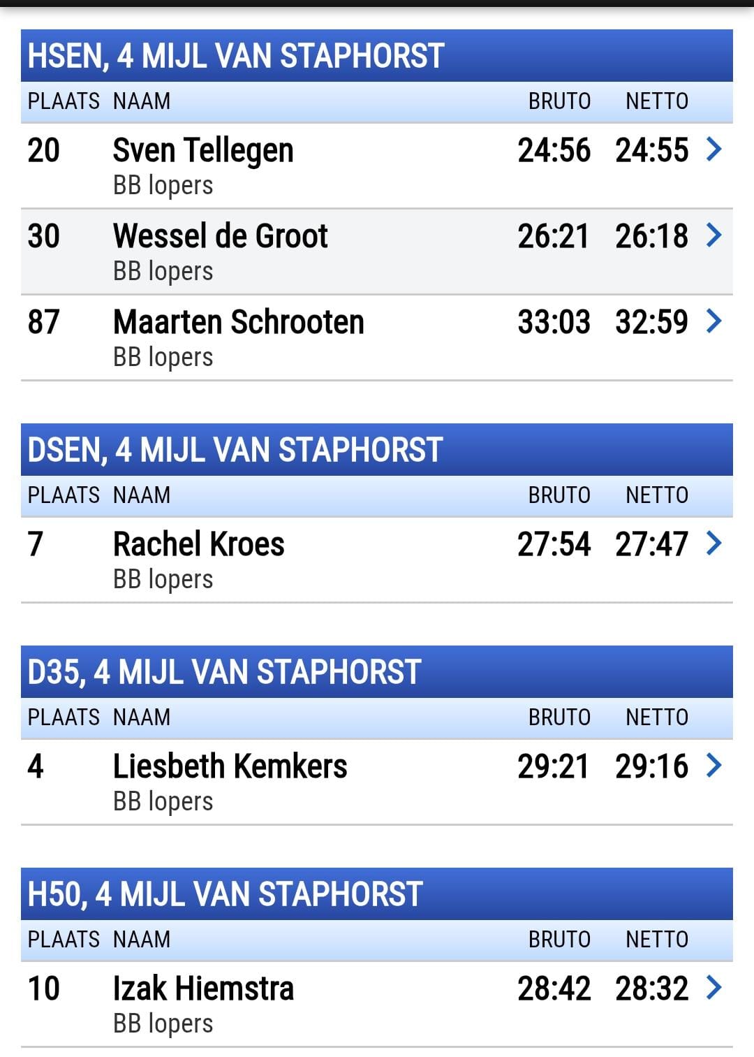 Dick van Os, de blauwe pijl bij de Gouden pijl in Emmen op de 5 mijl : 33:34