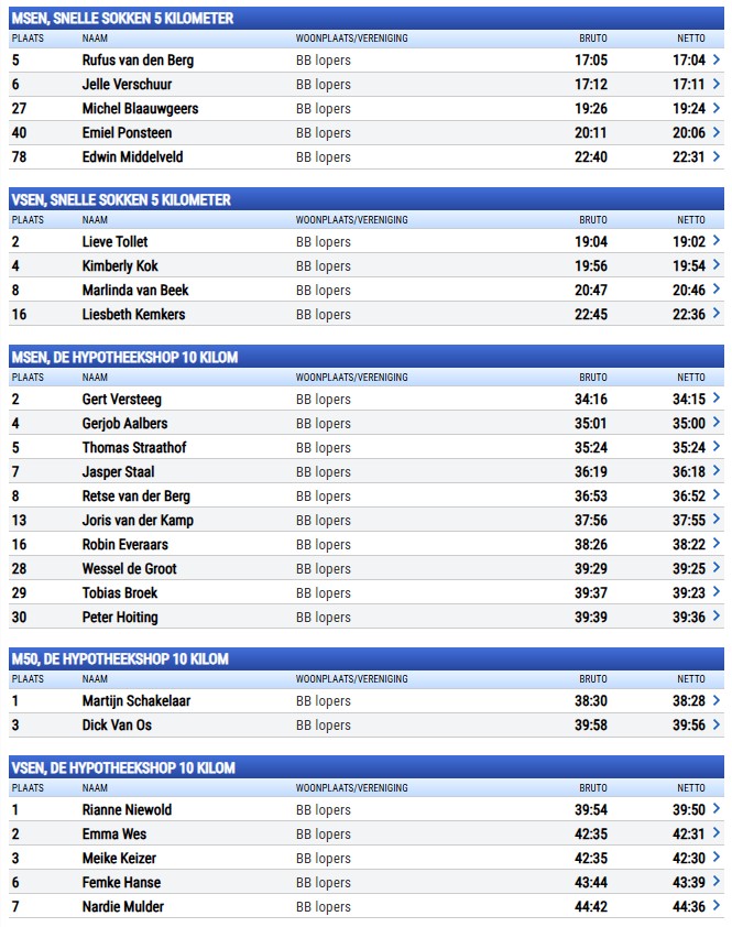 Andere opvallende prestaties waren er voor Wessel de Groot, hij liep een prachtig PR op dit parcours: 39:25. Gefeliciteerd.